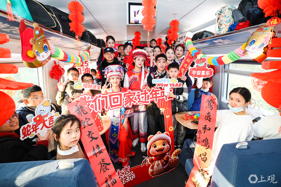 1月21日,上海客运段高铁四车队准备了“中国年,民族情,齐聚高铁过小年”精彩活动,G1653次列车上充满了团圆与喜庆的氛围。
