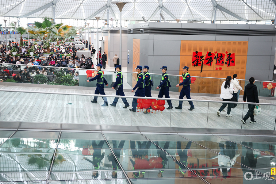 1月27日,徐汇消防在铁路上海南站开展现场驻防工作,针对站内商铺、公共区域及办公区域的电器设备进行安全排查。
