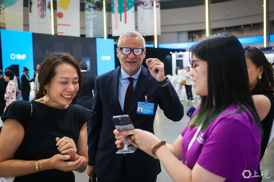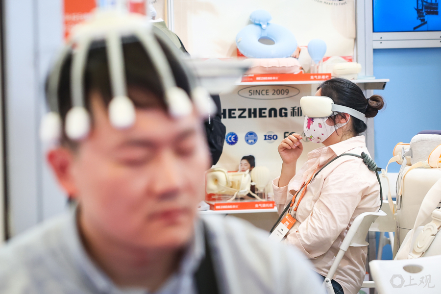 9月11日,以“重塑创新增长”为主题的2025外滩大会在黄浦世博园区举行。对于婴儿来说哭声就是说话,婴儿哭声面具将成人的语言转换为婴儿的哭声。