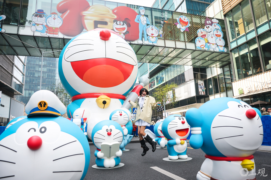 3月8日,12米高的巨型充气哆啦A梦和近百个各式动漫、电影形象的哆啦A梦雕塑一齐亮相安义路,可爱感溢满城市街头,吸引了大批市民驻足打卡、拍照留念。