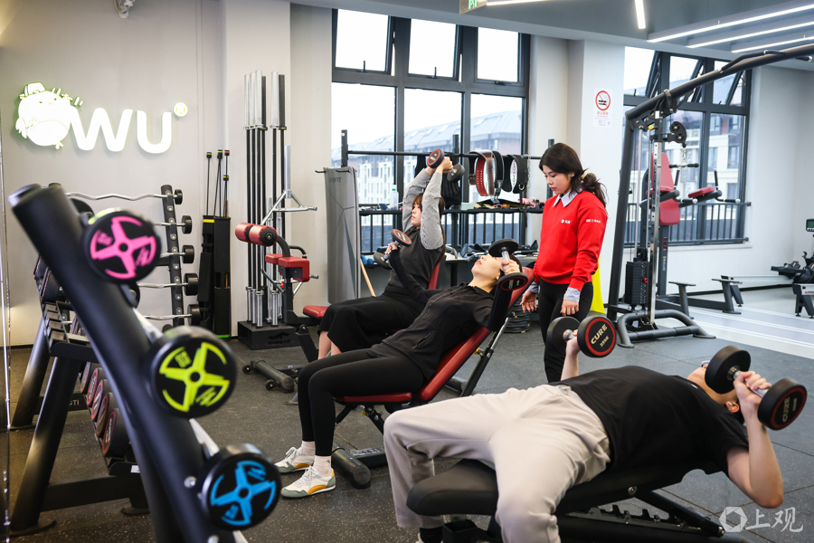 3月14日,上海健身行业合同示范文本发布。这是人们在位于国泓路392弄的五氧健身内锻炼身体。
