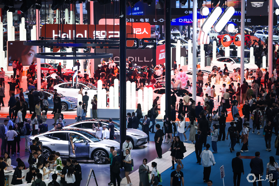 4月23日,上海国际车展在国家会展中心(上海)开幕,上汽集团携六大整车企业、十个品牌、上百辆新车亮相,展示面积近2万平方米,彰显“懂车更懂你”主题。