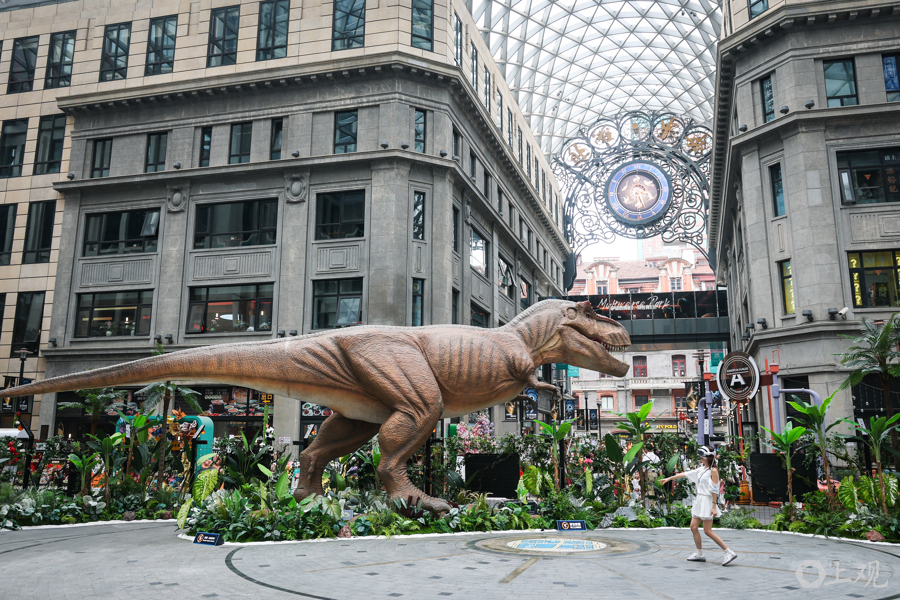 5月22日,位于外滩中央广场的百年历史建筑十字内庭,公共空间化身为可交互的探索现场,“多元宇宙乐园”融合拟真霸王龙、沉浸式MR混合现实叙事和亲子互动,突破虚实边界,重构城市文旅新体验。