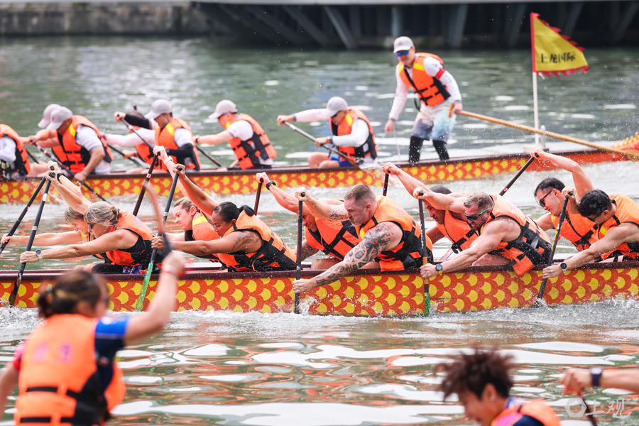5月25日,第二十一届上海苏州河城市龙舟邀请赛在中远两湾城·梦清园水域圆满落幕。来自不同国家和地区的58支龙舟队、1078名队员在普陀“半马苏河·七彩秀带”的滨水画卷上,共同描绘“龙耀苏河、向新而行”的热闹景象。