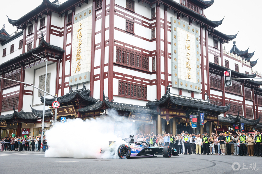 5月28日,2025韩泰轮胎FE电动方程式上海站比赛前夕,一场特别策划的“FE遇见黄浦”活动上,来自远景车队的车手塞巴斯蒂安·布埃米驾驶着GEN3 Evo赛车,从外滩源出发,途经外滩、老市府、南京东路等上海的地标性建筑,最终抵达豫园老街。
