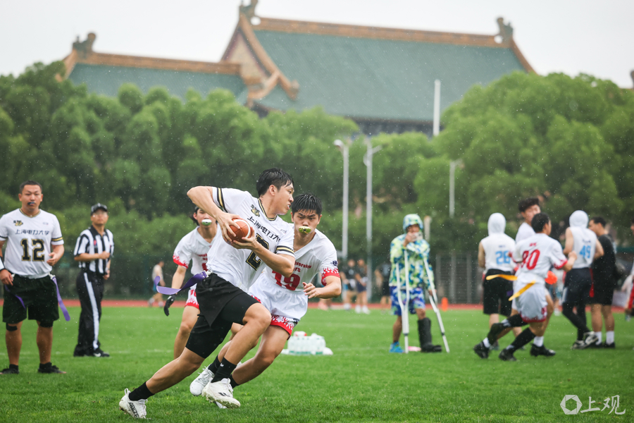 6月15日,第三届“绿瓦碗”腰旗橄榄球公开赛在雨中的上海体育大学西田径场举行。作为“韵动杨浦·秀出来”高校联盟系列赛升级后的首场赛事,本届比赛吸引了复旦大学、上海交通大学和上海大学等12所知名高校参赛,规模和参赛水平均创下新高。