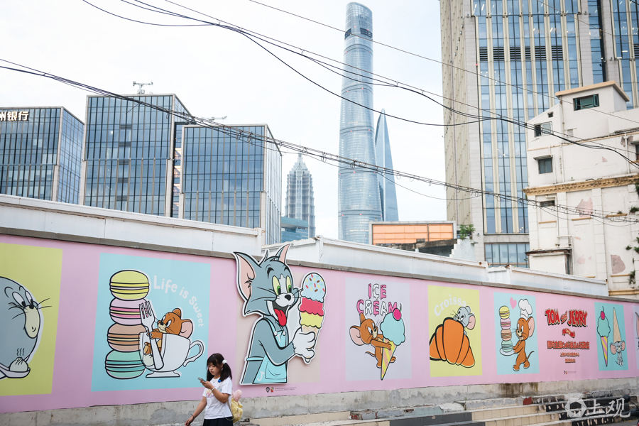 6月20日,黄浦大豫园片区的方浜中路摇身一变,成为“猫和老鼠”主题街区,吸引市民游客前来打卡体验。