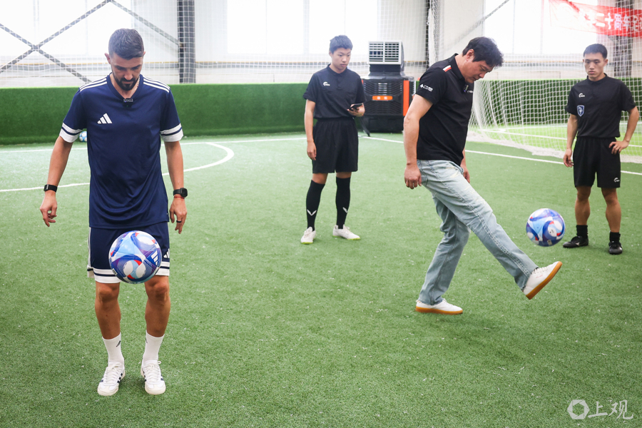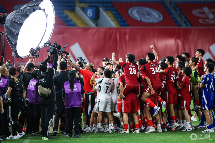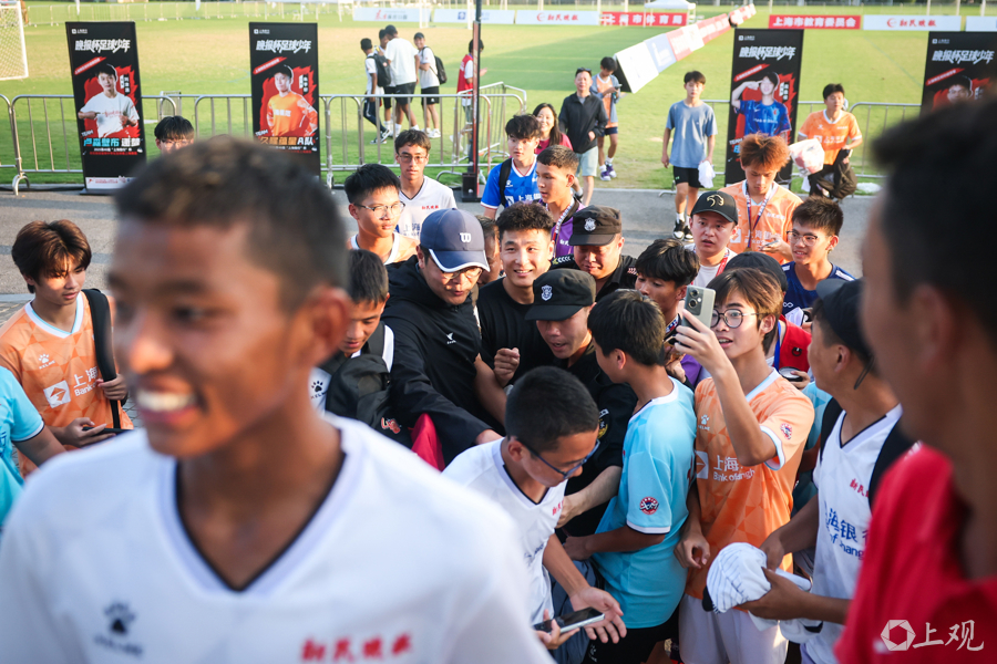 8月24日,2025年新民晚报暑期中学生足球赛全国交流赛在浦东前滩体育公园落幕,武磊的亮相吸引众多小球员关注。