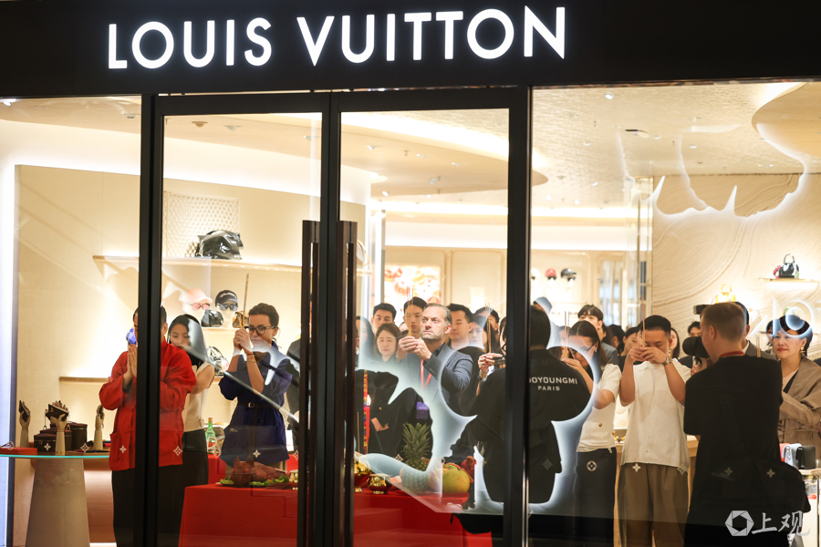 6月25日,路易威登(LV)高层在位于兴业太古汇的门店内进行开业前的准备工作。