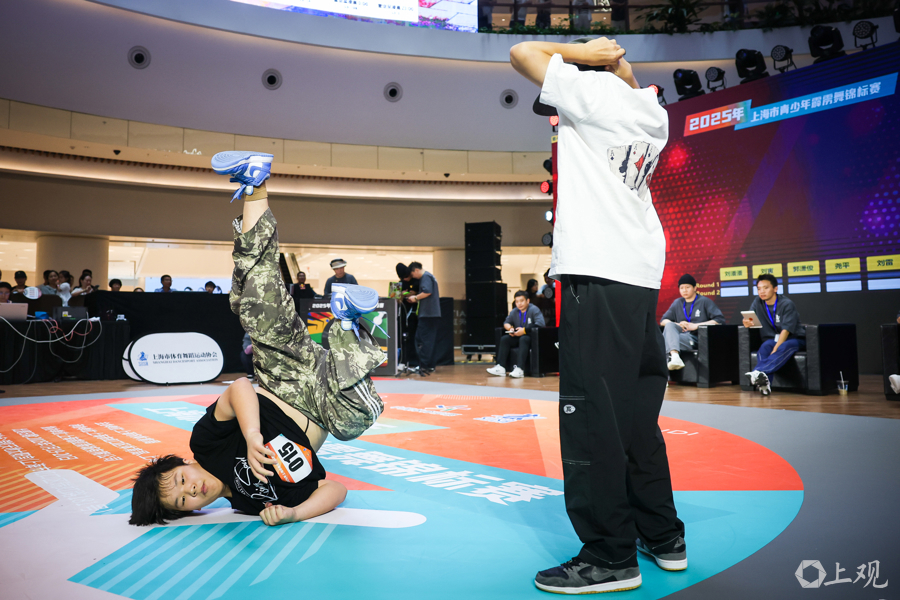 7月19日,为期两天的上海市青少年霹雳舞锦标赛在瑞虹天地太阳宫一楼中庭开赛,5至15岁的霹雳男孩和霹雳女孩,用极具观赏性的斗舞,吸引周末逛街的人群围观驻足。
