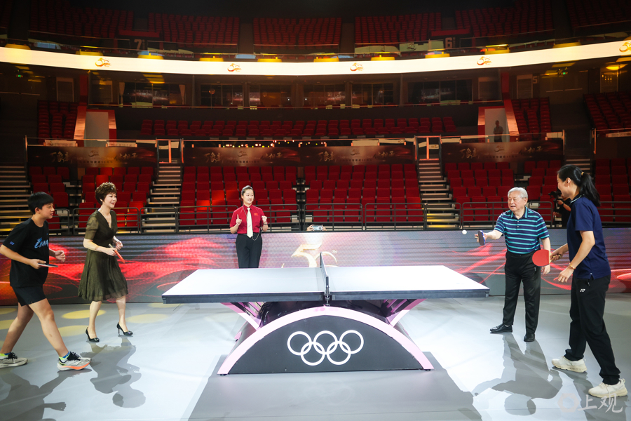 8月10日,8月10日,上海体育馆“万体馆”迎来五十岁生日,国际乒联终身名誉主席徐寅生、乒乓球世界冠军曹燕华与羽毛球世界冠军王仪涵、新生代青少年乒乓球爱好者展开了一场跨界乒乓球挑战。