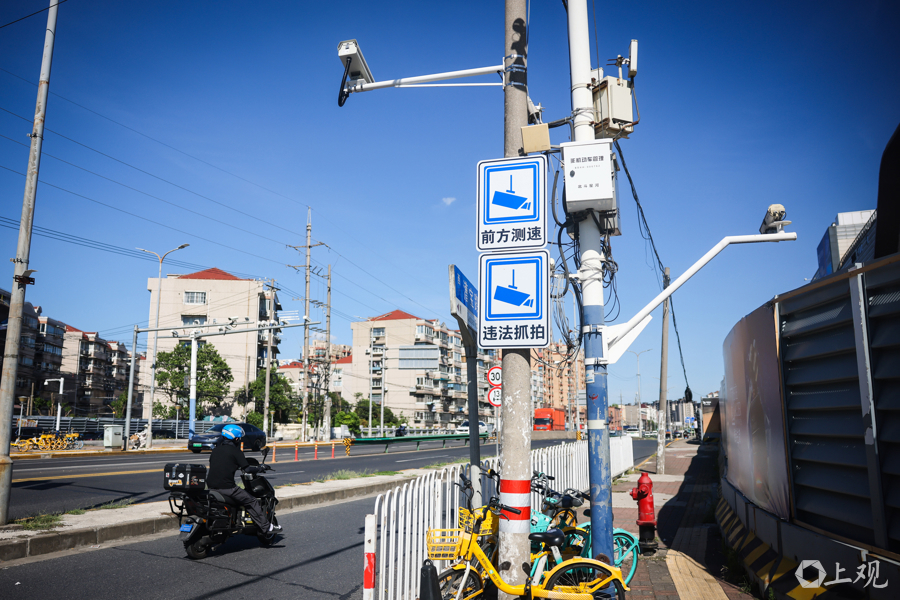 8月28日,漕宝路虹莘路路口启用“电动自行车超速”抓拍装置,路段设区间测速提示,上海“电子警察”开始严查超速行为。