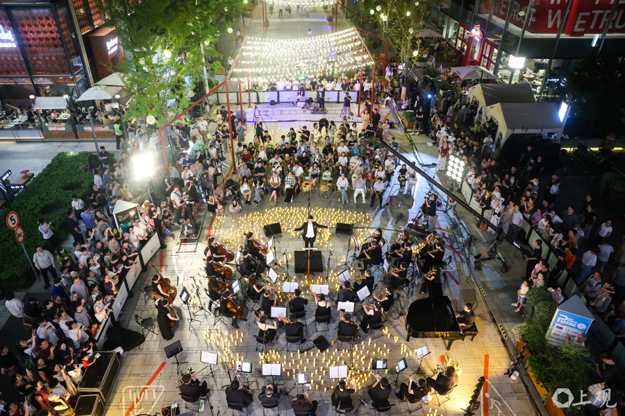 8月29日,上海前滩公园巷化身为七夕浪漫剧场,一场别开生面的“马路情歌·烛光交响音乐会”在摇曳的烛光与黄浦江夜景中拉开帷幕。