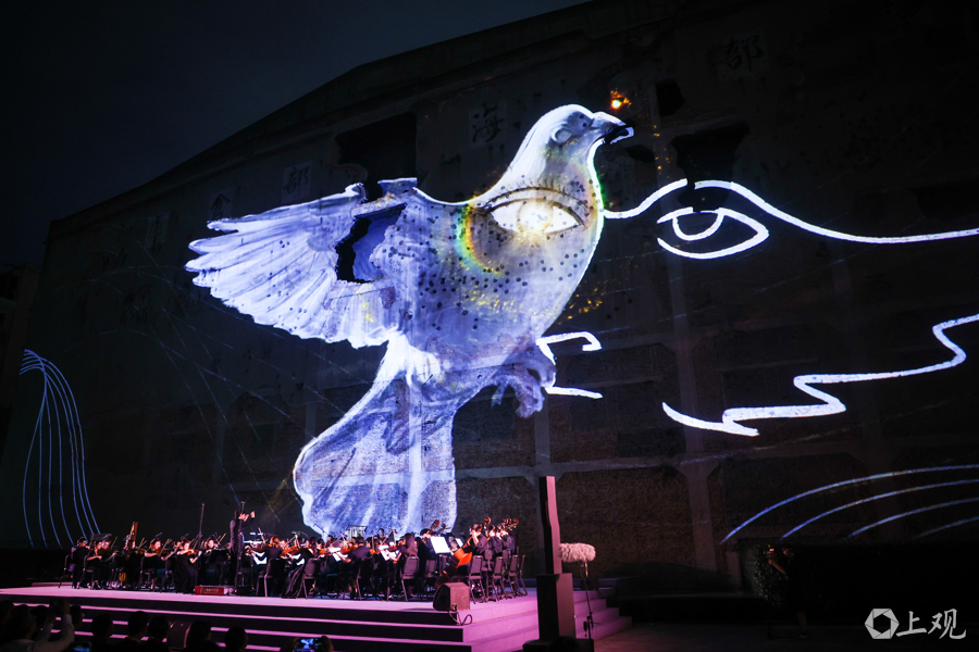 9月3日,纪念中国人民抗日战争暨世界反法西斯战争胜利80周年主题光影音乐会在位于静安区的四行仓库抗战纪念馆晋元纪念广场举行。音乐会以四行仓库西墙为天然幕布,通过创新融合的光影艺术与交响乐章,带领观众回望烽火岁月,汲取前行力量。
