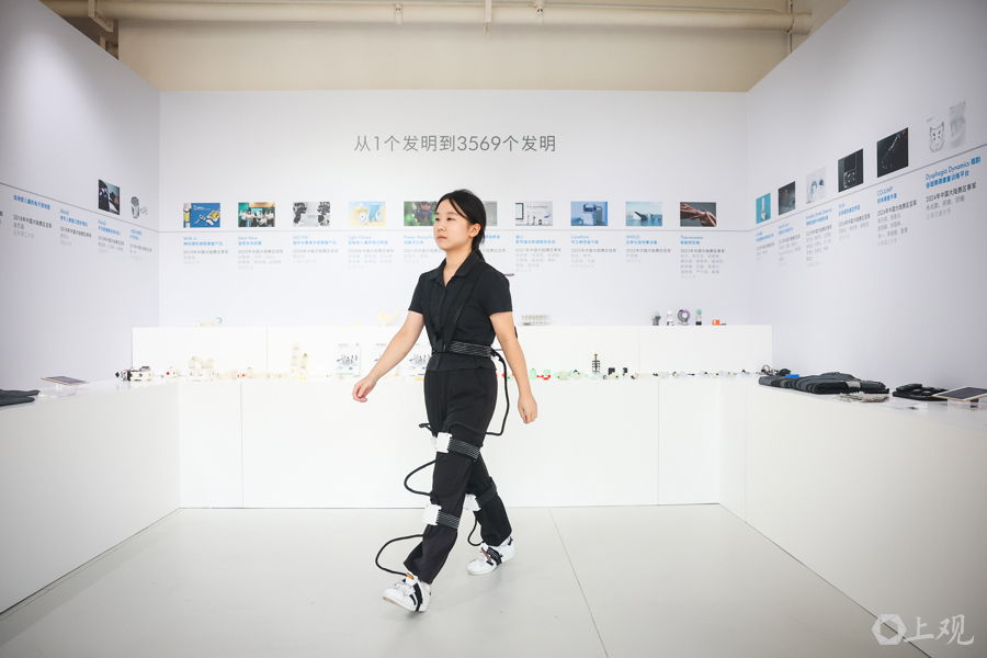 9月12日,戴森设计大奖中国大陆赛区颁奖仪式暨十周年特别活动在外滩举行。来自上海交通大学的陆瀚文、宋新园团队展示其获奖作品的功能,演示可快速穿戴的青少年脊柱侧弯检测设备使用流程。