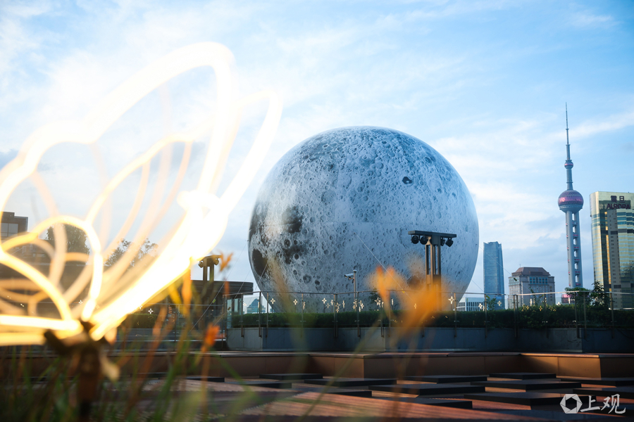 9月19日,第五届外滩艺术季如约而至,BFC外滩金融中心顶楼露台新设了一个“超级月亮”艺术装置,供市民游客拍照打卡。