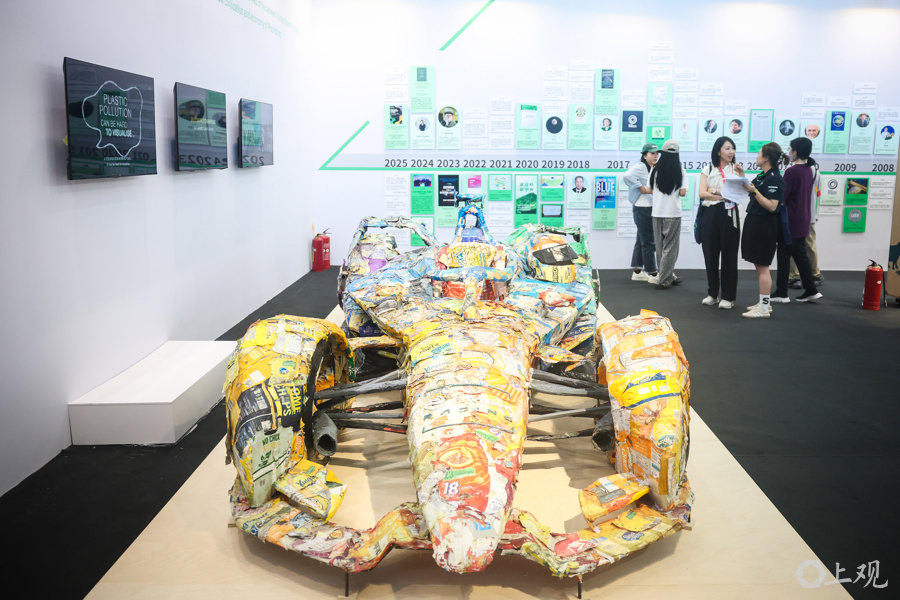 9月25日,2025世界设计之都大会(WDCC2025)在黄浦世博园区开幕。以100公斤塑料垃圾为原材料,耗时700小时纯手工制作,按照1:1尺寸还原的远景电动方程式赛车亮相2025世界设计之都大会“生生不息”主题展。