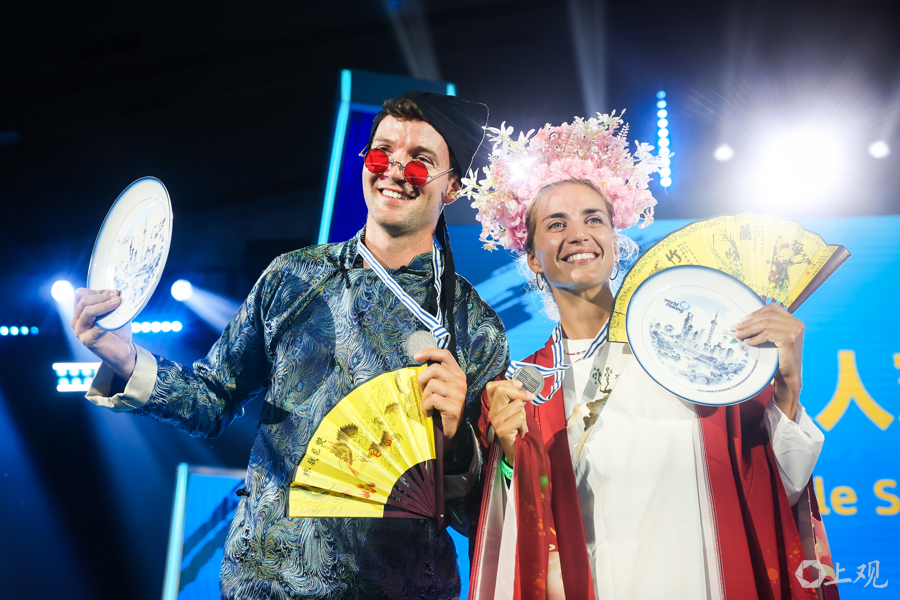 9月28日,2025年世界赛艇锦标赛颁奖仪式在黄浦江畔海鸥丽晶酒店的露台启动,获奖选手佩戴奖牌登上“城市舞台”。