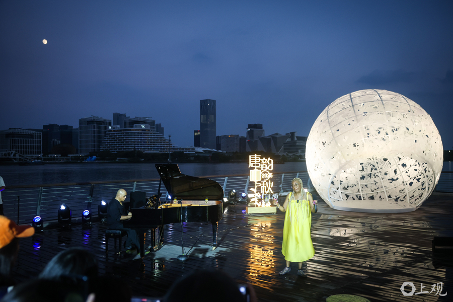 10月5日,西岸梦中心船坞亲水平台大型装置《月满》化身“艺术圆月”,轮番上演中西文化碰撞的唐韵中秋系列演出。