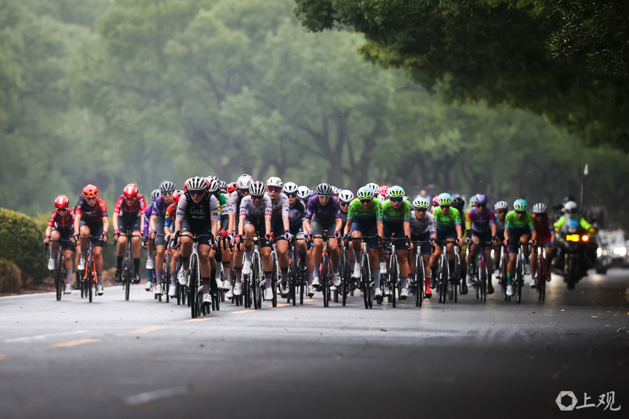 10月14日,2025年环崇明岛国际自盟女子公路世界巡回赛在崇明新城公园鸣笛开赛。全球近百名顶尖车手齐聚一堂,在赛场上挥洒汗水。赛事为期3天,来自世界各地的近百名职业车手在总长348.6公里的赛道上展开角逐。