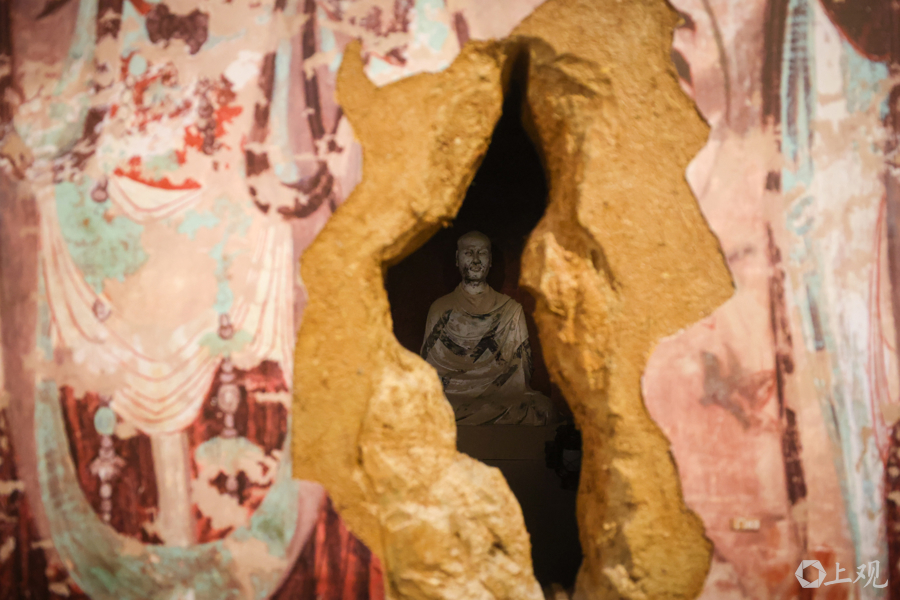 10月23日,“何以敦煌·念念回响”敦煌文化艺术公益展在上海艺丰中心启幕。展览涵盖莫高窟早、中、晚期文化艺术精华,集中呈现5座莫高窟经典复制窟、6件敦煌藏经洞遗书、7尊彩塑以及50幅涵盖早中晚期的壁画代表作。