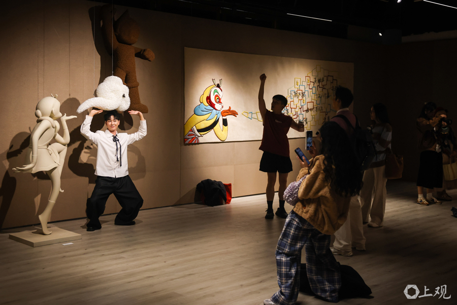 7月11日,法国艺术家让·朱利安的中国首展“朱朱之城”,在上海花木时光里的南志阁艺术中心举行。让·朱利安的作品以幽默温暖的视觉语言闻名,融合日式动漫与法式漫画基因,此次展览呈现其全新创作的80余幅绘画及装置。