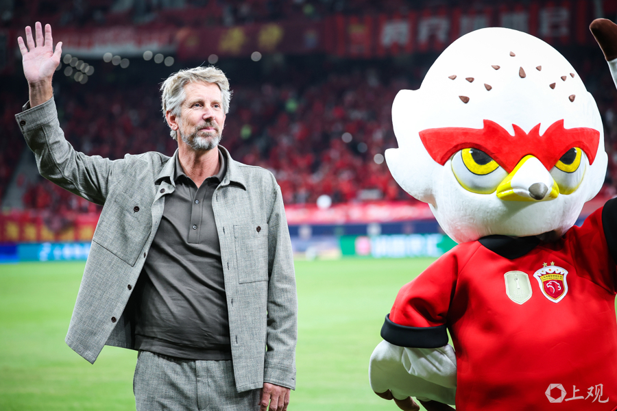 10月31日,中超联赛第29轮上海海港主场对阵浙江队,英超曼联队名宿、著名门将范德萨在赛前与海港队吉祥物“伊戈”一同出场。