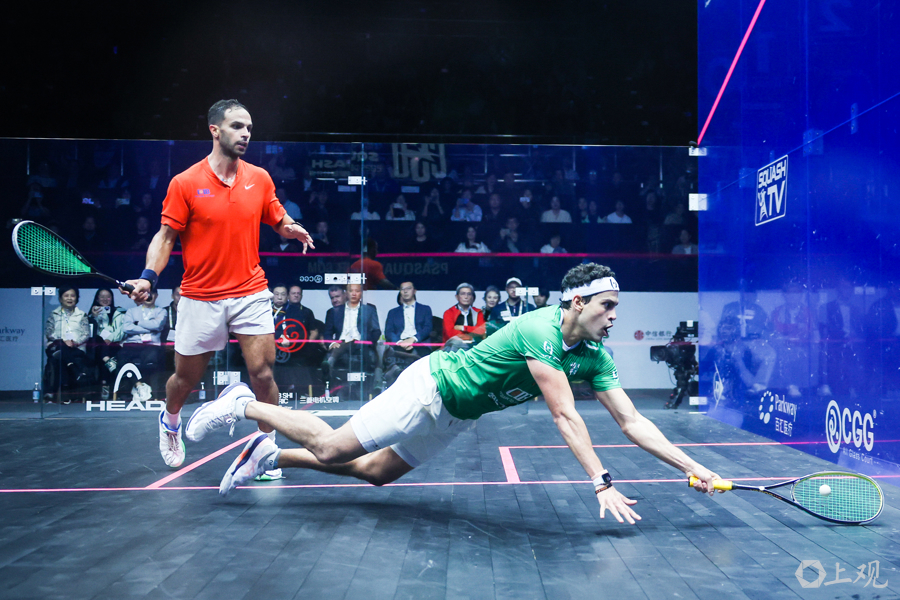 11月16日,中国壁球公开赛在上海久事体育场馆仙霞网球中心落幕。埃及选手穆罕默德·阿布埃尔加和同胞优素福·易卜拉欣上演五局大战,最终阿布埃尔加(图左)以3:2胜出,夺得男子单打冠军。