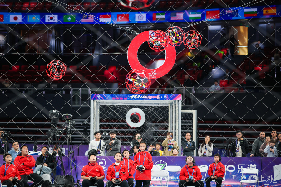 11月18日,2025年世界无人机足球锦标赛在上海体育馆收官。为期4天的赛事中,来自四大洲18个国家和地区的46支代表队展开激烈竞逐,最终中国队包揽F9A-A、F9A-B两个组别的冠亚军。