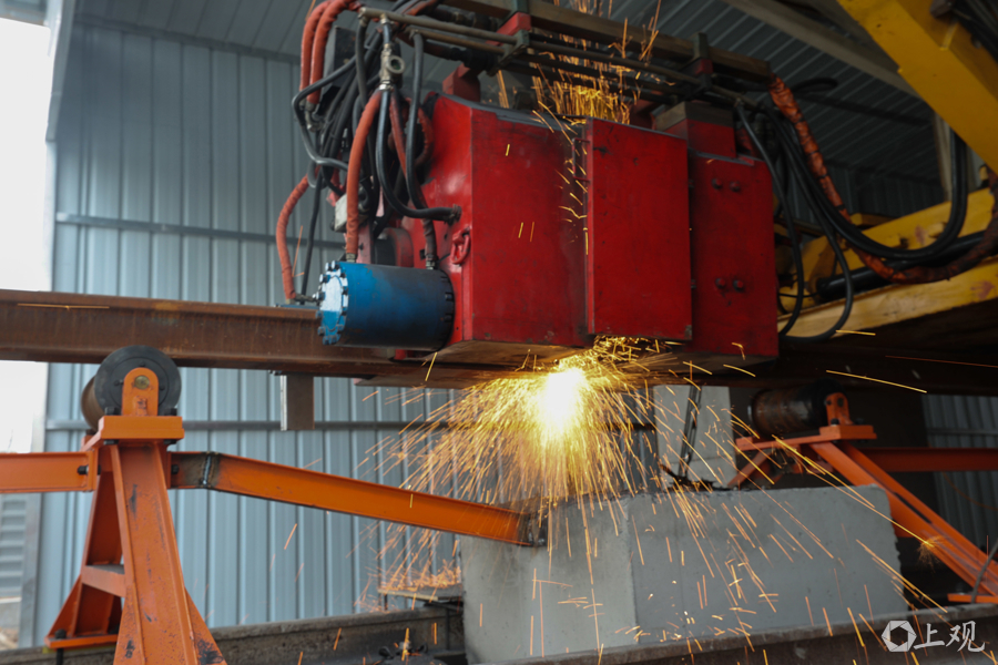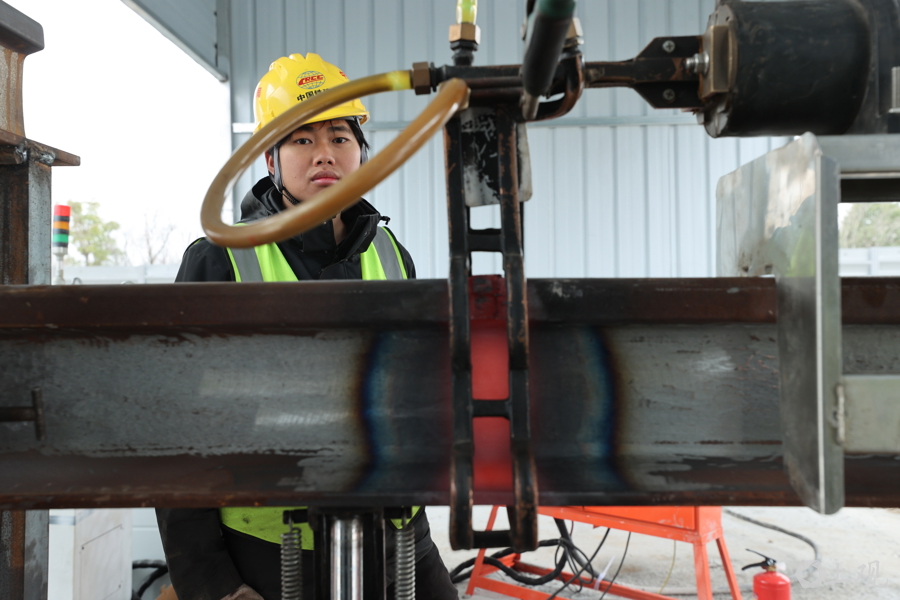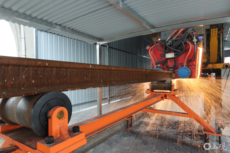 该焊轨基地依托320米辊装流水线与12台龙门吊协同作业,实现短轨进场至长轨存放、装车的全流程高效流转,承担全线70%的钢轨焊接任务。